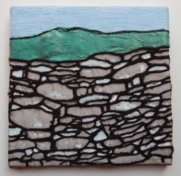 Stitch and layered fabric inspired by dry stone walls in Shetland Year: 2010 Medium: Textile Size:30cm x 30xcm